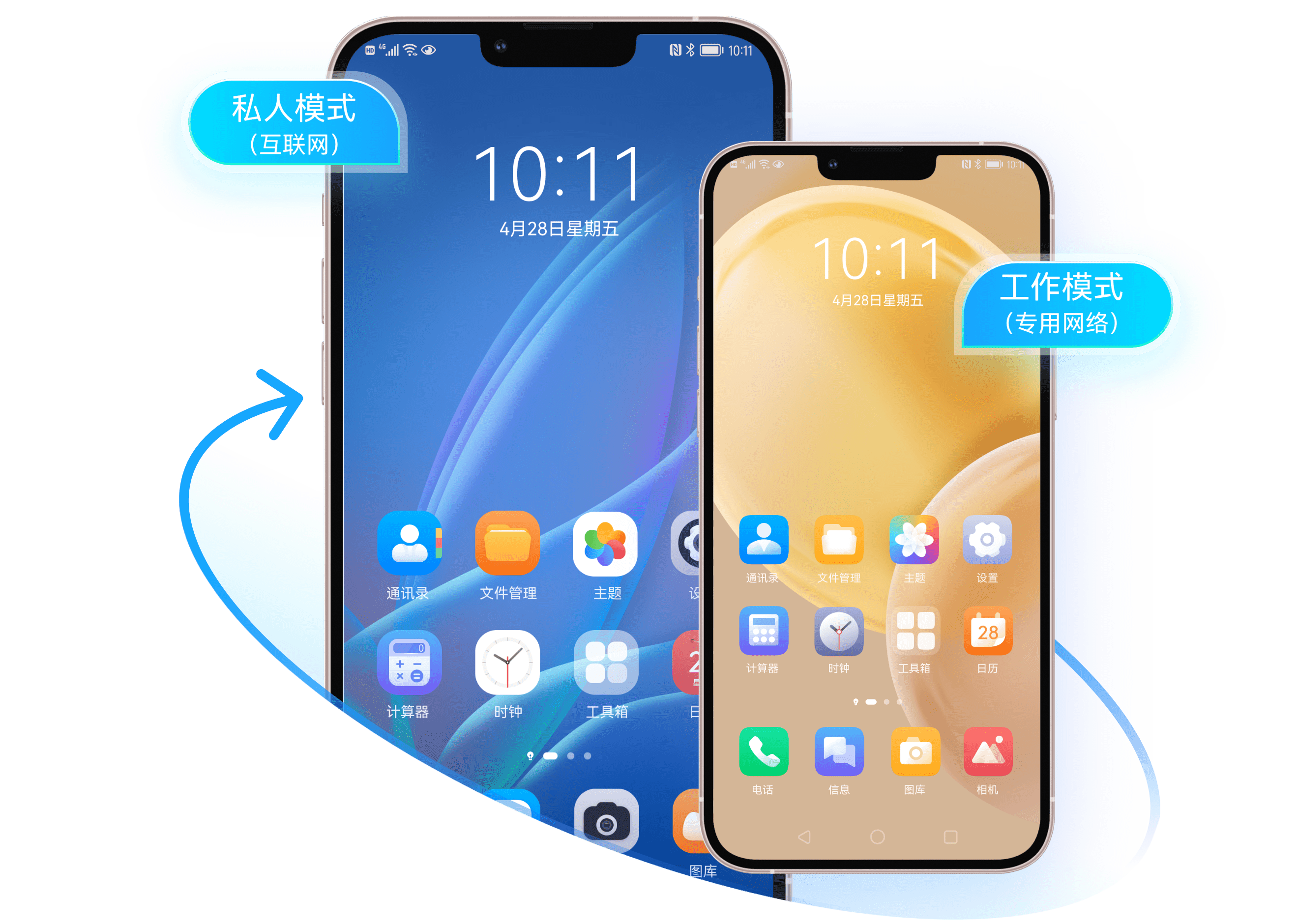应用黑白名单管理,统一管理工作应用;系统级沙盒隔离技术,支持不同安全等级系统分级管理